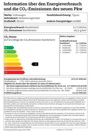 Energieverbrauch (kombiniert) 6,2 l/100 km CO2-Emissionen (kombiniert) 142 g/km Kraftstoffverbrauch Innenstadt (niedrig) 8,1 l/100 km Kraftstoffverbrauch Stadtrand (mittel) 5,9 l/100 km Kraftstoffverbrauch Landstraße (hoch) 5,3 l/100 km Kraftstoffverbrauch Autobahn (extra hoch) 6,5 l/100 km CO2-Klasse (CO2-Emissionen kombiniert) E